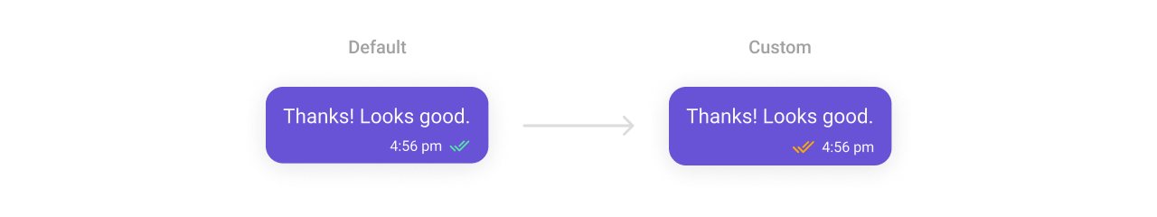 TheCometChatReceipts Component indicates message delivery and read statuses using intuitive icons. These can be styled for icon size, tint, and alignment, ensuring they remain clear and consistent with your app’s UI.
